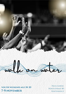 beschrijving | ![]() Gemeenschap Chemin Neuf in Oosterhout houdt in het weekend van 7 t/m 9 november 2025 een jongerenweekend voor jongeren van 18-30 jaar. Soms voelt het leven als een storm. Je agenda is vol, je hoofd maakt overuren. En de wereld is chaotisch en beangstigend. Misschien lijkt het wel alsof jouw levensboot in zwaar water geraakt is. Maar Jezus roept ons op om uit de boot te stappen en Hem te vertrouwen. Hij is de ultieme bron van hoop, sterker dan elke golf, elke onzekerheid die op ons afkomt. Met Hem kunnen we verder kijken dan angst en twijfel. De wereld snakt naar echtheid en waarheid, naar iets, naar Iemand die echt standhoudt. En wij mogen de wereld laten zien en vertellen wie Jezus is. Niet omdat wij zo sterk zijn, maar omdat Hij dat in ons is. Samen kiezen we voor hoop, samen leren we met Hem te lopen op water. Durf jij de stap te zetten? Kom dan naar het Jongerenweekend “Walk on water”. _________________________ Sometimes life feels like a storm. It might seem like your life’s boat has hit rough waters. But Jesus calls us to step out and trust Him. With Him, we can see beyond fear and doubt. Not because we are so strong, but because He is strong in us. Together we choose hope, together we learn to walk on water with Him. Do you dare to take the step? Then come to the Youth Weekend ”Walk on Water” from 7 till 9 November in Oosterhout. It will be a weekend filled with teachings, music, prayer, games and lots of beautiful people (with you there of course:)).