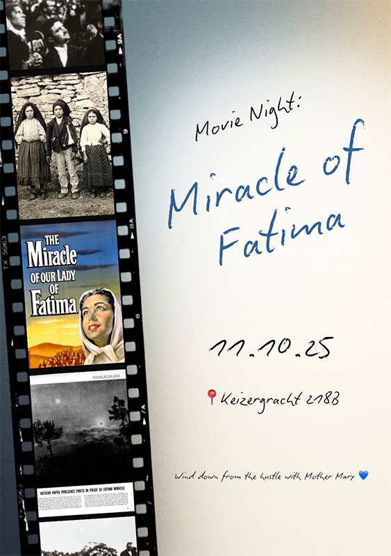 Spend an evening with Mother Mary. We will watch the movie about Miracle of Fatima and meditate on her motherly love and promises for us.