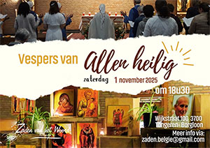 Op zaterdag 1 november vanaf 18.30 uur is iedereen uitgenodigd deel te nemen aan de Vesper van Allerheiligen bij de Gemeenschap Zaden van het Woord in Tongeren-Borgloon.