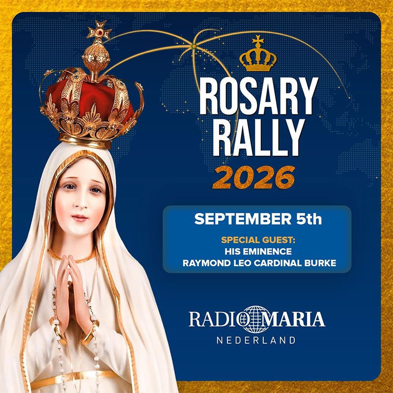 De Rosary Rally 2026 van Radio Maria Nederland is bekend: Op zaterdag 5 september 2026 zal de bijzondere dag van eerherstel aan het Onbevlekt Hart van Maria zijn, met als bijzondere gast zijne eminentie Raymond Leo kardinaal Burke! Noteer de datum en zegt het voort!