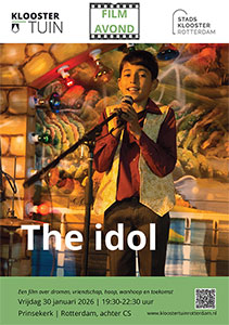 In de Prinsekerk te Rotterdam organiseert Kloostertuin Rotterdam op 30 januari 2026 een filmavond met de film The Idol. De muzikale Mohammed Assaf groeit op in Gaza en zingt hij van kleins af aan overal waar dat maar kan. Nour overlijdt echter en Mohammed groeit op in verdriet en bitterheid, temeer omdat zijn geboortestad ook door oorlog wordt getroffen. Als hij 25 jaar is wil hij meedoen aan een talentenjacht. Hij neemt grote risico’s, maar reist vanuit het vluchtelingenkamp naar Egypte, waar de auditie is. Wat geeft hoop in een uitzichtloze situatie? Hoe leef je verder als groot verdriet of oorlog op je pad komt? Is er perspectief?