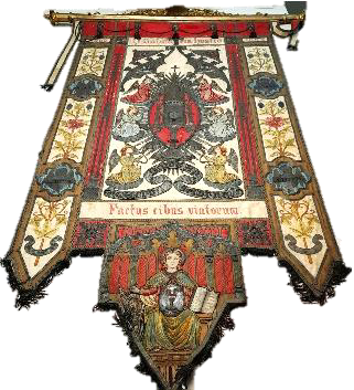zal het worden ingezegend door plebaan Vincent Blom. Het vaandel stamt uit 1884 en belandde in 2002, bij de verhuizing van de Broederschap van de Capucijnenkerk naar de Sint-Jan, in het depot van de Sint-Jan. Daar werd het enige jaren geleden in zwaar gehavende staat teruggevonden.