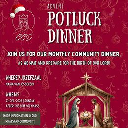 God’s people, this Sunday (after the 6pm Holy Mass), join us for a very special potluck: our Christmas potluck & the last one in 2025!