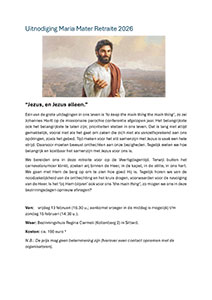 “Jezus, en Jezus alleen.” Eén van de grote uitdagingen in ons leven is ‘to keep the main thing the main thing’, zo zei Johannes Hartl op de missionaire parochie conferentie afgelopen jaar. Het belangrijkste ook het belangrijkste te laten zijn; prioriteiten stellen in ons leven. Dat is lang niet altijd gemakkelijk, vooral niet als het gaat om zaken die zich niet als vanzelfsprekend aan ons opdringen, zoals het gebed. Tijd maken voor het stil samenzijn met Jezus is vaak een hele strijd. Daarvoor moeten bewust onthechten aan onze bezigheden. Tegelijk weten we hoe belangrijk en kostbaar het samenzijn met Jezus voor ons is. We bereiden ons in deze retraite voor op de Veertigdagentijd. Terwijl buiten het carnavalsrumoer klinkt, zoeken wij binnen de Heer, in de kapel, in de stilte, in ons hart. We gaan met Hem de berg op om te zien hoe goed Hij is. Tegelijk horen we van de noodzakelijkheid van de onthechting en het kruis dragen, voorwaarden voor de navolging van de Heer. Is het ‘bij Hem blijven’ ook voor ons ‘the main thing’, zo mogen we ons in deze bezinningsdagen opnieuw afvragen? Wanneer: vrijdag 13 februari (16.30 uur aankomst, vroeger in de middag is mogelijk) t/m zondag 15 februari (14.30 uur). Waar: Bezinningshuis Regina Carmeli (Kollenberg 2) in Sittard. Kosten: ca. € 190 * Impressie: