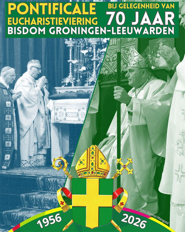 Op 2 februari 1956 werd ons bisdom opgericht door Paus Pius XII. En dat betekent dat we op 2 februari precies 70 jaar bestaan – een mijlpaal die we niet ongemerkt voorbij laten gaan! Maandag 2 februari, exact 70 jaar later, vieren we dit tijdens de pontificale Eucharistieviering om 19.00 uur in de Sint Jozefkathedraal te Groningen.