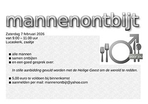 Maandelijks wordt een mannenontbijt gehouden van 9.00 tot 11.00 uur in de koffiezaal van de Lucaskerk. Een goed gesprek over: Graag even opgeven via: mannenontbijt@yahoo.com De kosten bedragen € 5 per persoon, te voldoen bij binnenkomst.