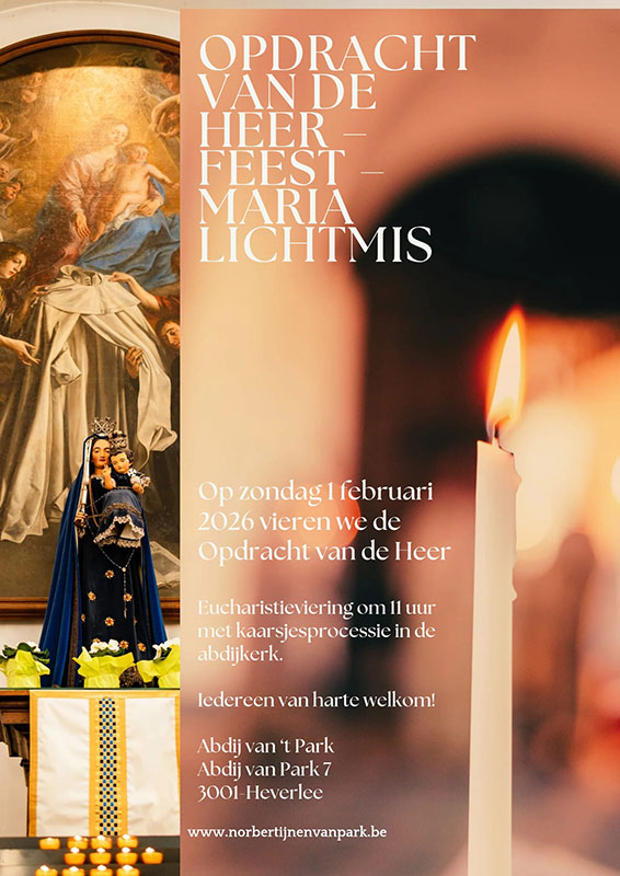 Op zondag 1 februari 2026 vieren we samen het feest van de Opdracht van de Heer (Maria Lichtmis) in de prachtige abdijkerk! Eucharistieviering om 11.00 uur met kaarsjesprocessie in de kerk. Een warm en sfeervol moment om samen het licht van Christus te vieren!