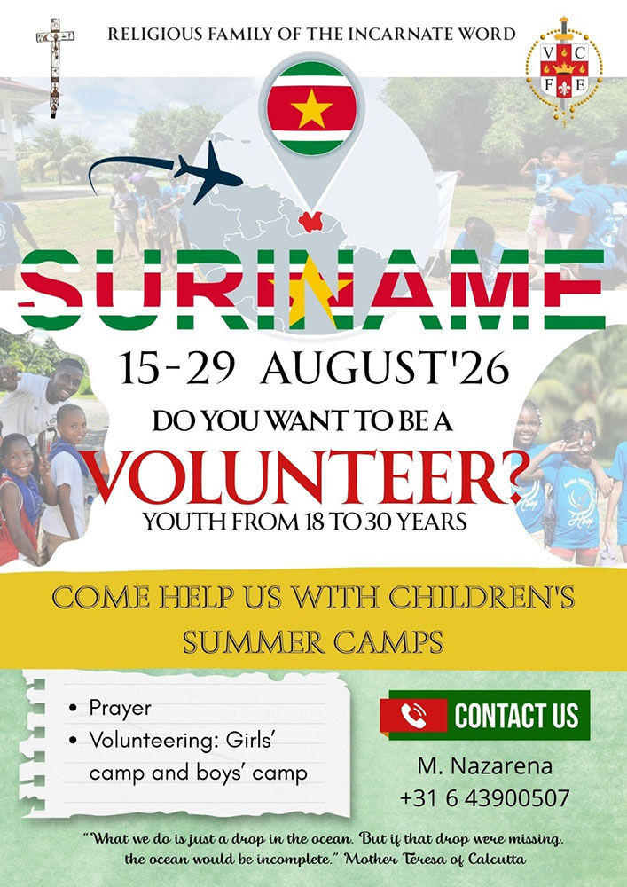 Come to help with Children’s Summer Camps in Suriname of the Religious Family of the Incarnate Word.
