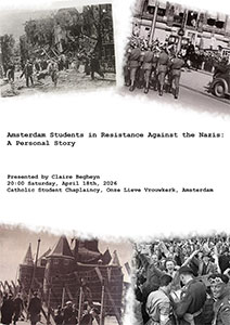 Our speaker, Claire Begheyn, will share the courageous experiences of Amsterdam students who dared to resist the Nazi occupation during World War II. Through personal accounts, family history, and never-before-heard details, she brings to life the bravery, fear, solidarity, and sacrifice of a generation of young people who refused to accept tyranny.