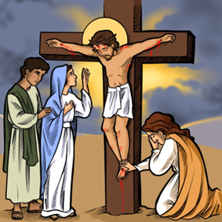 Het verhaal van de Kruisdood van Jezus en zijn Verrijzenis op Pasen wordt verteld in vertelseries 10 en 11 van ons Verteltheater.