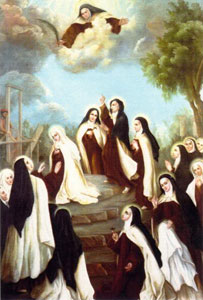 Op het einde van de 18 eeuw bevond Frankrijk zich in een hachelijke strijd tussen het hels geweld van de Franse revolutie en Christenen uit elke stand. Ook de Karmel van Compiègne stond in deze strijd. Ze werden veroordeeld op z.g.n. misdaden tegen de staat. De Karmelietessen deden de gemeenschappelijke toewijding om zich als zoenoffers over te leveren, zo de rechtvaardige toorn van God te bedaren en voor de Godsdienst en Frankrijk vrede te verkrijgen. In 1906 werden de 16 Karmelietessen zalig verklaard.