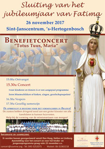 Op zondag 26 november 2017 wordt in het Sint-Janscentrum te ’s-Hertogenbosch een benefietconcert gehouden ter afsluiting van het jubileumjaar van Fatima. Programma Details