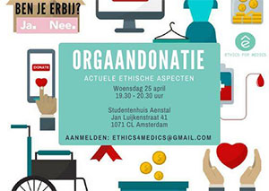 Op woensdag 25 april 2018 van 19.30 tot ~20.30 uur wordt in Studentenhuis Aenstal te Amsterdam een presentatie gegeven over orgaandonatie.