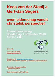 Op donderdag 1 november 2018 houdt de Christelijke Hogeschool Ede een interactieve lezing over leiderschap vanuit christelijk perspectief. Sprekers zijn Kees van der Staaij en Gert-Jan Segers.