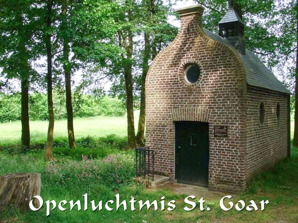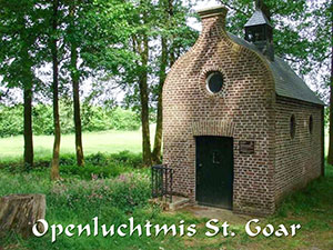 beschrijving | ![]() Een van de meest indrukwekkende missen ieder jaar weer opnieuw is de Openluchtmis bij de kapel van St. Goar, Moleneind 9 te Meerlo. Komende zondag 7 juli is het weer zover. Dan willen we bij de kapel weer de H. Mis om 10.30 uur gaan vieren. Juist zo samen de H. Mis vieren midden in het bos, met de schoonheid van Gods schepping om ons heen onder de klanken van de fanfare is gewoon geweldig. Ieder jaar weer opnieuw doet het mij wat. En niet alleen mij, maar ook alle andere mensen die daar samen komen. Graag wil ik u ook uitnodigen om het dit jaar mee te maken. Om 10.00 uur zal de fanfare vanaf de kerk in processie naar de kapel treken. U kunt achter hen aan of op eigen gelegenheid daarheen gaan. De route van de processie loopt via de Hoofdstraat, de Holstraat en de Postbaan naar de kapel. Voor hen die niet met de processie mee kunnen gaan is er op de toegangsweg parkeerplaats. Helaas is er niet voor iedereen ter plaatse een zitplaats. Natuurlijk is het mogelijk dat u een eigen stoel meeneemt of een deken om op te zitten. Bij slecht weer, wat we niet hopen, zal de H. Mis gewoon in de kerk zijn. Om de H. Mis buiten bij zijn kapel te doen past wel bij de heilige. Hij heeft toch als een kluizenaar toch zeer veel buiten en verbonden met Gods schepping geleefd. En dat was voor hem ook voldoende. Misschien mogen wij ook eens wat meer genieten van Gods schepping. Kinderwoorddienst