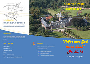 Onder de gunstige tekenen van mogelijke versoepelingen van de corona-maatregelen durven we het aan om in juni een retraite in te leggen, die oorspronkelijk vorig jaar in november gepland was. We zijn blij dat E.H. Theo Hermans hiertoe bereid was. Van 21 tot en met 25 juni 2021 vindt er op het gastenkwartier van de abdij van Postel een retraite plaats met als thema ‘Offer aan God liever dank.’ (Ps. 50,14) Over dankbaarheid, geloof en leven. E.H. Theo Hermans, priester van het bisdom Hasselt, zal deze retraite begeleiden. De eerste conferentie van de retraite is op maandag 21 juni om 10.30 uur. Toekomen kan vanaf 9.30 uur. Het einde van de retraite is voorzien vrijdag 27 november na het middagmaal omstreeks 14.00 uur. Tijdens deze retraite is er tijd voor stilte en gebed. Dagelijks sluiten we aan bij de H. Mis en het getijdengebed van de abdijgemeenschap. Elke dag worden er twee inleidingen verzorgd.