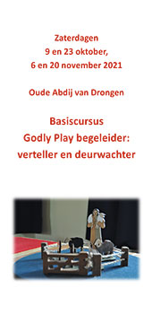 Ben je op zoek naar een creatieve en ervaringsgerichte manier om Bijbelverhalen te verkennen met kinderen (vanaf 3 jaar), jongeren of volwassenen? Wil je hen op een speelse manier vertrouwd maken met Bijbelverhalen, parabels en liturgie? Wereldwijd wordt Godly Play ingezet bij godsdienstonderwijs en catechese, in de pastorale zorg in ziekenhuizen en zorg- voorzieningen (bij ouderen en bij mensen met een beperking), bij bezinningen en vormingen met volwassenen, ... Deze internationaal erkende basiscursus geeft de nodige training en achtergrond om zelf aan de slag te gaan als Godly Play begeleider. Je wordt hierbij begeleid door twee erkende Godly Play trainers. Wil je graag zelf aan de slag? Heb je een werkveld voor ogen waarin je kan groeien als verteller? Schrijf je dan zo snel mogelijk in. Het aantal plaatsen is beperkt. Programma Dag 1 - van 8.45 tot 18.00 uur Dag 2 - van 8.45 tot 18.00 uur Dag 3 - van 8.45 tot 17.30 uur Terugkomdag - van 9.00 tot 16.30 uur NB. Een certificaat van Godly Play begeleider kan enkel uitgereikt worden na het volgen van deze dagen. Opgelet: indien de cursus semi-digitaal zou moeten doorgaan, worden deze inhouden verspreid over de vier zaterdagen. Details