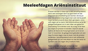 Van 6 tot en met 12 november wordt de Nationale Roepingenweek georganiseerd. Reden voor het Ariënsinstituut om geïnteresseerden gelegenheid te geven enkele dagen mee te leven.