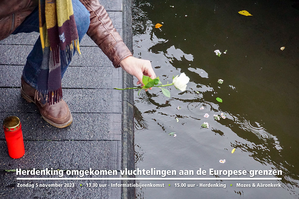Op zondag 5 november vindt om 15.00 uur in de Mozes en Aäronkerk (Waterlooplein 207 Amsterdam) de jaarlijkse oecumenische herdenking plaats van de vluchtelingen die afgelopen jaar omkwamen aan de Europese grenzen. Bij de herdenking nemen hun verhalen een belangrijke plaats in. Aan de buitengrenzen van Europa spelen zich dagelijks drama’s af. Mensen die op zoek zijn naar een beter en veiliger leven, verdrinken in zee of komen op andere manieren onderweg om. Aan hen denken wij en hun namen worden genoemd, opdat zij niet vergeten worden. Ds. Ineke Bakker, voorzitter van de Werkgroep Vluchtelingen van de Nederlandse Raad van Kerken, zal tijdens de herdenkingsdienst de overweging verzorgen. Verder werken voorgangers uit verschillende protestantse, orthodoxe en katholieke kerken mee. De herdenking wordt afgesloten met een processie naar de Amstel, waar bloemen worden uitgestrooid om de overledenen te gedenken. Voorafgaand aan de herdenking vindt in het Huis van Sant’Egidio, Waterlooplein 205, om 13.30 uur een informatiebijeenkomst plaats. Spreker is Carolus Grütters, onderzoeker bij het Centrum voor Migratierecht van de Radboud Universiteit Nijmegen. Hij zal de plannen toelichten van het kerkelijke initiatief voor Kleinschalige Asielopvang in Nederland. De herdenking wordt georganiseerd door de Raad van Kerken Amsterdam, het Jeannette Noëlhuis, de Protestantse Diaconie en de Gemeenschap van Sant’Egidio.