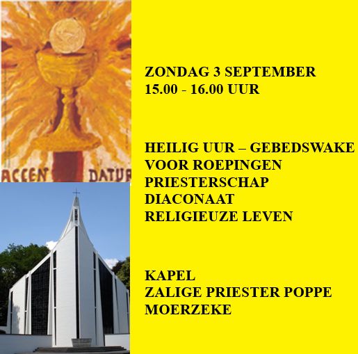 Op zondag 3 september 2023 wordt om 15.00 uur weer een gebedswake gehouden voor roepingen. Met uitstelling van het HEILIG SACRAMENT “De oogst is groot maar arbeiders zijn er weinig. Bidt daarom de Heer van de oogst om arbeiders te zenden” (Mt. 9, 35-38). Allen welkom vanuit de houding: Blijven wij bidden - vragen - om het geschenk van roepingen