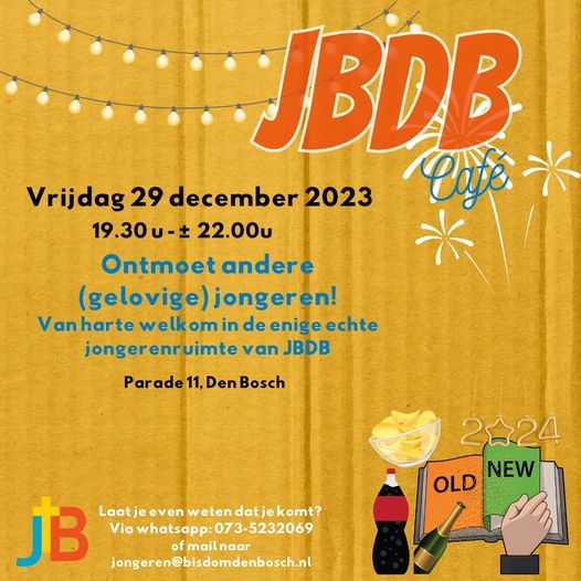 Het is zover, er komt weer een JBDB Café aan! Vrijdag 29 december is er weer de mogelijkheid om elkaar te ontmoeten, samen een drankje te doen, een spelletje te spelen of gewoon gezellig bij te kletsen. Aanmelden is fijn, maar als je spontaan besluit langs te komen ben je ook van harte welkom! Zien we je dan?