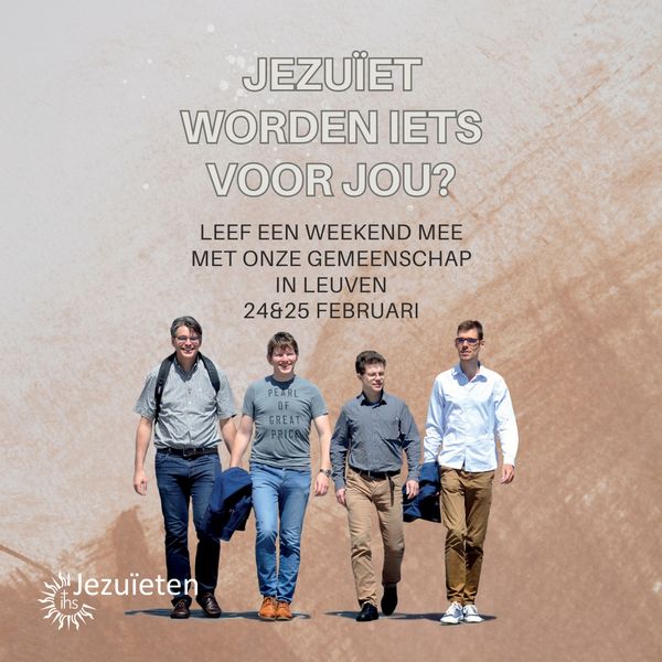 beschrijving | ![]() Loop je rond met het idee misschien jezuïet te willen worden? Van zaterdag 24 op zondag 25 februari 2024, kun je meeleven met onze jezuïetengemeenschap in Leuven. Om samen je roepingsvraag te verdiepen. In dit weekend logeer je in het jezuïetenhuis in Leuven. Waar gaat het in zo’n weekend over?