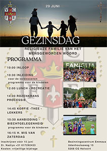 Op zaterdag 29 juni organiseert de Religieuze Familie van het Mensgeworden Woord een gezinsdag in Helvoirt.
