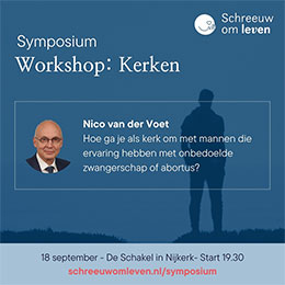 Het jaarthema waar Schreeuw om leven zich dit jaar mee bezig houdt is ‘Mannen, onbedoelde zwangerschap en abortus’. We geven aandacht aan de rol die mannen spelen in het proces van onbedoelde zwangerschap en hoe mannen omgaan met abortus. Op woensdag 18 september 2024 wordt door Schreeuw om leven een symposium met deze titel georganiseerd. Onder andere vier workshops met Nico van dre Voet, Sijke Kok, Adrianne Vroegindeweij, Arthur Alerliessten en Mathilde Brandemann. Aanmelden via www.schreeuwomleven.nl/symposium
