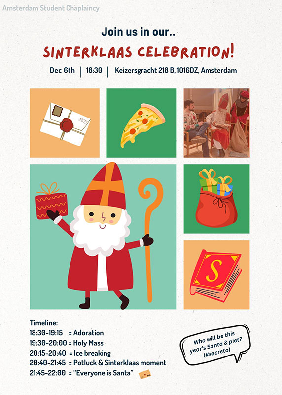 Amsterdam Student Chaplaincy will celebrate ‘Sinterklaas’ at December 6th.