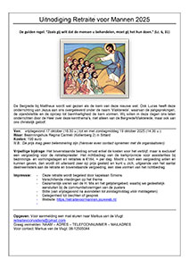 De gulden regel: “Zoals gij wilt dat de mensen u behandelen, moet gij het hun doen.” (Lc. 6, 31) De Bergrede bij Mattheus wordt wel gezien als de kern van deze nieuwe wet. Ook Lucas heeft deze onderrichting van Jezus aan ons overgeleverd onder de naam ‘Vlakterede’, waarvan de zaligsprekingen, de vijandsliefde en de oproep tot barmhartigheid de kern vormen. Wij willen in deze dagen ons laten onderrichten door de Heer over deze kernthema’s, niet alleen van de Bergrede/Vlakterede, maar ook van ons christelijk geloof. Details