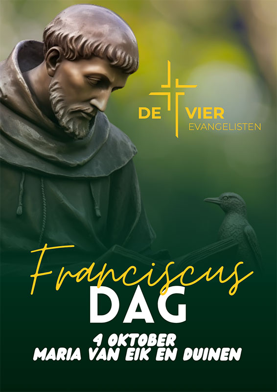 In de week van 28 september t/m 4 oktober viert de parochie De vier evangelisten de Franciscusweek. Op zaterdag 4 oktober om 17.00 u is de feestelijke afsluiting met plechtige vespers met pastoor Kouijzer en de cantorij De vier evangelisten o.l.v. Andre Vis in de OLV Hemelvaartkerk. Tijdens deze viering worden werken gezongen van o.a. Heinrich Isaac, Duarte Lobo (Magnificat) en Matteo Magistrali.