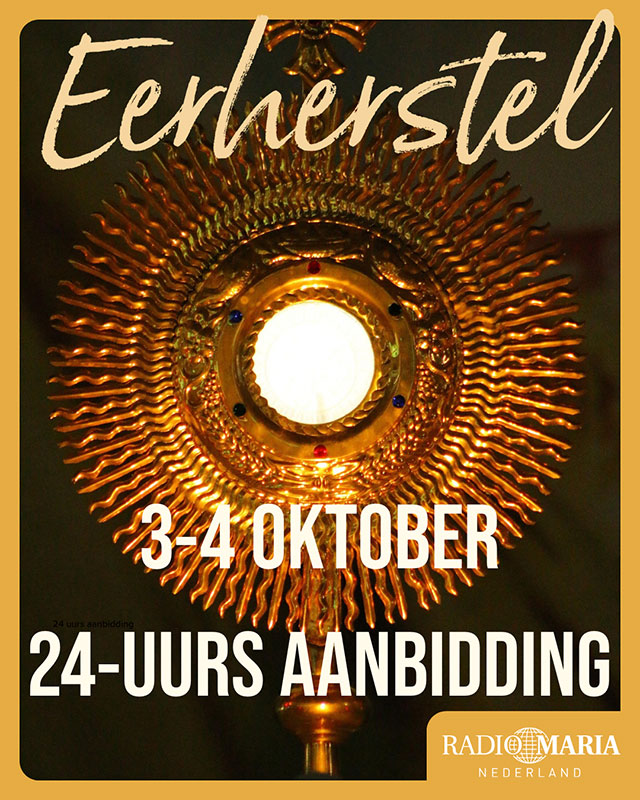 beschrijving | ![]() Sinds de slag van Lepanto op 7 oktober 1571, waar we de overwinning op de Ottomanen danken aan O.L. Vrouwe van de Rozenkrans, is oktober onlosmakelijk verbonden met de H. Rozenkrans. Aanvankelijk met een feest, tot Paus Leo XIII er de complete maand aan wijdde. Omdat de tijden waarin we leven zeker beschreven kunnen worden als ‘woelig’ willen we bij Radio Maria Jezus Christus in het Allerheiligst Sacrament en O.L. Vrouwe van de Rozenkrans de eer te brengen die hen toekomt. Om die reden zullen we aan het begin van de maand oktober starten met 24-uurs aanbidding en een 24-uurs keten van gebed. De aanbidding vind plaats in de kapel van onze studio op de Waalstraat 2 in Den Bosch. We zouden het fijn vinden wanneer zoveel mogelijk mensen zich inschrijven via dit formulier: docs.google.com/forms/d/13odfVtT3bis8O-aAGwT52ruO4yYYdylaHqe5FNetBCk/viewform?edit_requested=true De 24 uurs gebedsketen vind decentraal plaats, d.w.z. op een plek die u het beste uitkomt. U kunt zich hier inschrijven op een moment wat u schikt.