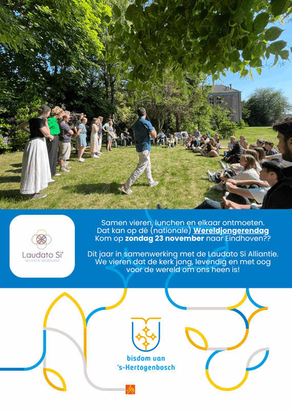 Zondag 23 november is het zover: dé nationale Wereldjongerendag. De paus roept bisdommen op om op deze dag met jongeren (16-30 jaar) samen te komen om het geloof te vieren, elkaar te ontmoeten en nieuwe inspiratie op te doen. Dit jaar staan we ook stil bij iets bijzonders: het is 10 jaar geleden dat paus Franciscus zijn pauselijke encycliek ‘Laudato Si’ uitbracht waarin hij oproept om goed voor de aarde en elkaar te zorgen. Dat past mooi bij de tijd van het jaar, want de Advent, een periode van voorbereiding op Kerstmis, komt eraan. Het thema ‘matigheid’ speelt daarin een belangrijke rol: leven met minder en kiezen voor wat er écht toe doet. Programma Locatie: Sint Joriskerk, Eindhoven