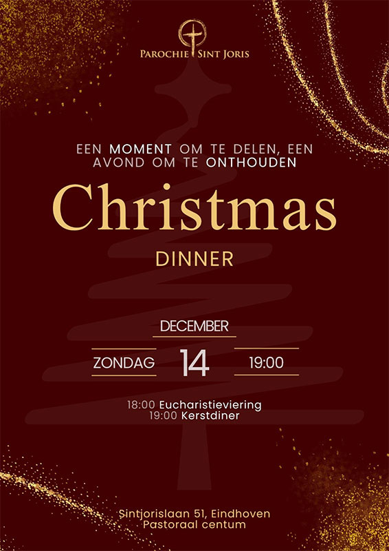 Op zondagavond 14 december houdt de Parochie Sint Joris te Eindhoven weer een Christmas Dinner.