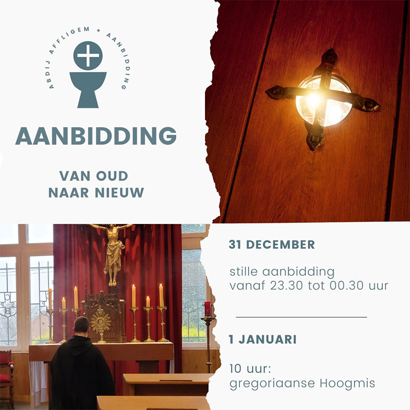 In de Abdij Affligem is van woensdag 31 december 23.30 uur tot donderdag 1 januari 00.30 uur stille aanbidding. Tevens is er op 1 januari om 10.00 uur een Gregoriaanse Hoogmis.