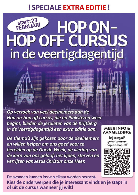 Op verzoek van veel deelnemers aan de Hop On - Hop Off cursus die na pinksteren begint, bieden de jezuïeten van de Krijtberg een extra editie aan in de Veertigdagentijd.