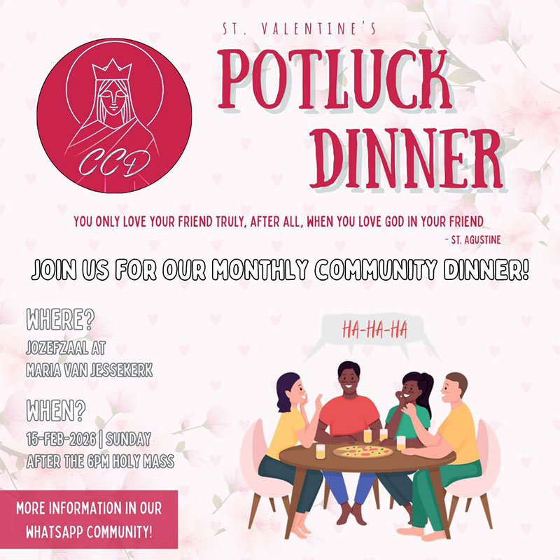 As usual, feel free to bring a snack, main dish, dessert, or drinks to share! Also, you can drop your item(s) in Jozefzaal before or after Mass!
