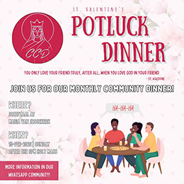 God’s people, this Sunday (after the 6pm Holy Mass), join us for a very special potluck: the one right before Lent (and after St Valentin’s Day)! Have you prepared your resolutions yet?