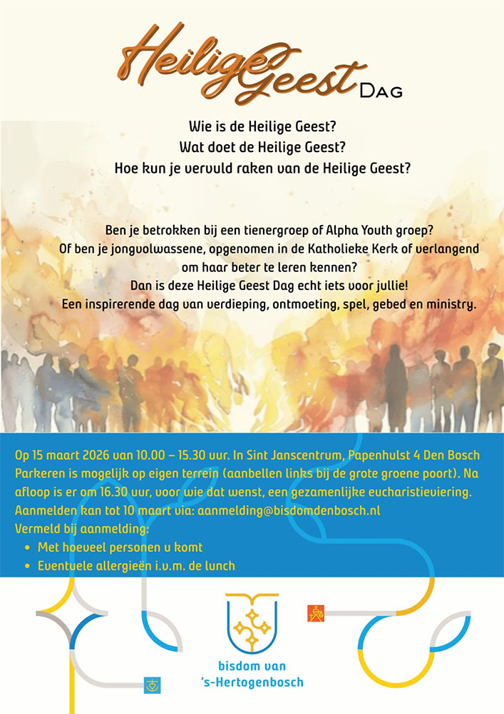 Ben je betrokken bij een tienergroep of Alpha Youth groep? Of ben je jongvolwassene, opgenomen in de Katholieke Kerk of verlangend om haar beter te leren kennen? Dan is deze Heilige Geest Dag echt iets voor jullie! Een inspirerende dag van verdieping, ontmoeting, spel, gebed en ministry.