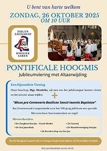 Zondag 26 oktober zal om 10.00 uur de Pontificale Hoogmis, m.m.v. de Broederschap van Sint Jan, plaatsvinden waarin onze bisschop,  Mgr. Hendriks, met ons het jubileumjaar komt vieren en het nieuwe altaar zal wijden.