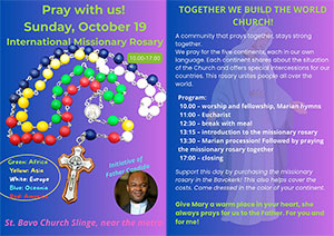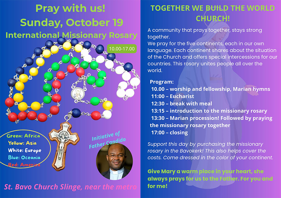 We pray for the five continents, each in our own language. Each continent shares about the situation of the Church and offers special intercessions for our countres. This Rosary unites people all over the world!