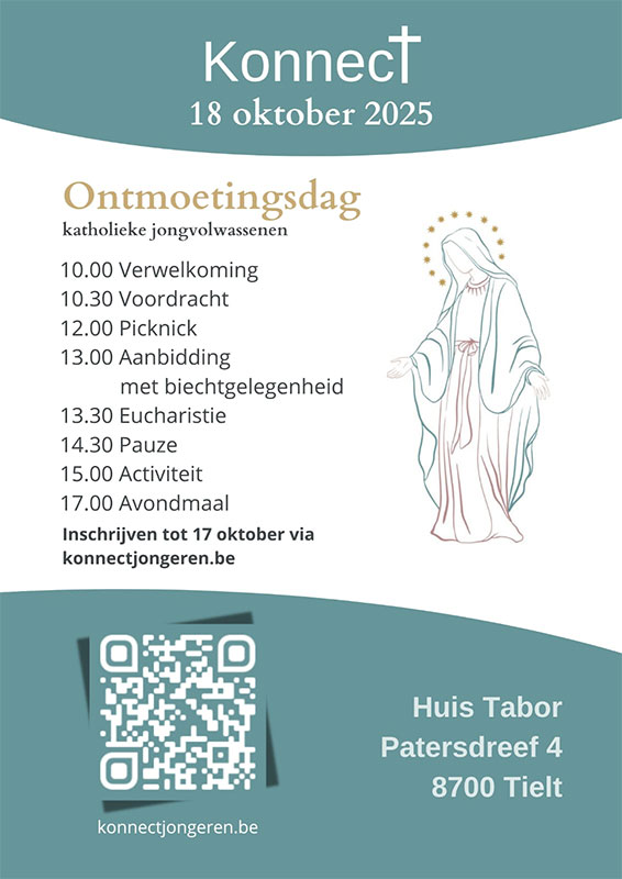 Op zaterdag 18 oktober 2025 wordt in Huis Tabor te Tielt (België) een ontmoetingsdag georganiseerd voor katholieke jongvolwassenen.