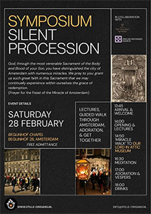 Laat u meenemen in de rijke literaire en spirituele traditie van Amsterdam tijdens dit symposium. Aan de hand van dichters en denkers als Willem van Hildegaersberch, Vondel, Marius en Anton van Duinkerken wordt de betekenis van het nog altijd levende eucharistisch geloof in Amsterdam belicht. Afgewisseld met muziek, orgelspel en momenten van reflectie, biedt deze middag verdieping, inspiratie en ontmoeting, op een unieke historische locatie in het hart van Amsterdam. Jongeren Aanmelden is niet nodig, maar wordt wel gewaardeerd: info@stille-omgang.nl Programma _____________________ Discover the rich history and living tradition of the Miracle of Amsterdam during this afternoon program. Through talks, artistic insight, a guided walk through the city, and moments of quiet reflection, you are invited to explore how this centuries-old event has shaped Amsterdam’s spiritual and cultural landscape. Program