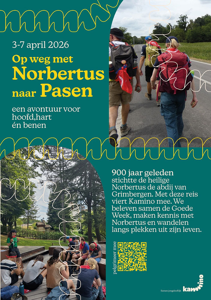 Dit jaar bestaat de Abdij van Grimbergen maar liefst 900 jaar - en jij kunt dat mee vieren! Samen met de paters van Grimbergen en Kamino organiseren we voor jou een uniek combinatie van het samen toeleven naar Pasen, de figuur van Norbertus ontdekken én letterlijk samen op weg gaan. We vertrekken op vrijdag 3 april 2026 rond 19.00 uur aan de Abdij van Grimbergen en rijden met minibusjes naar het noorden van Frankrijk. Onze uitvalsbasis voor deze vijfdaagse is gîte in Monceau-le-Waast, waar we de hele periode verblijven. Vanuit daar vertrekken we elke dag op tocht, in de omgeving van Laon en Prémontré. Op dinsdag 7 april zijn we rond 16.00 uur terug aan de Abdij van Grimbergen. Locatie: Monceau-le-Waast (Frankrijk) Verantwoordelijke: Elina Bouwens ⋅ elina.bouwens@kamino.be