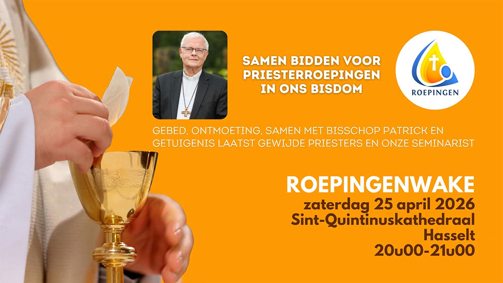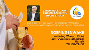 Op zaterdag 25 april - aan de vooravond van Roepingenzondag - wordt in Hasselt een Roepingenwake gehouden: een gebedswake voor roepingen. Iedereen is welkom van 20.00 tot 21.00 uur in de Sint-Quintinuskathedraal van Hasselt.